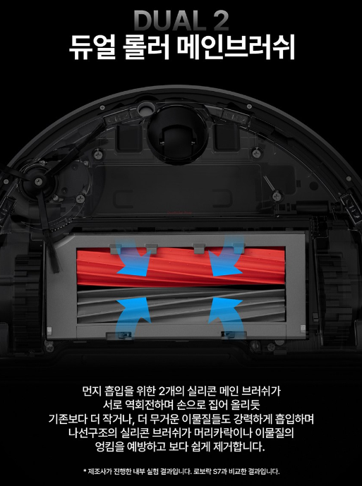 메인브러쉬도 듀얼로 만들어져 성능까지 2개로 듀얼 음파 진동과 흡입력이 먼지를 말끔하게 제거해 줘요.