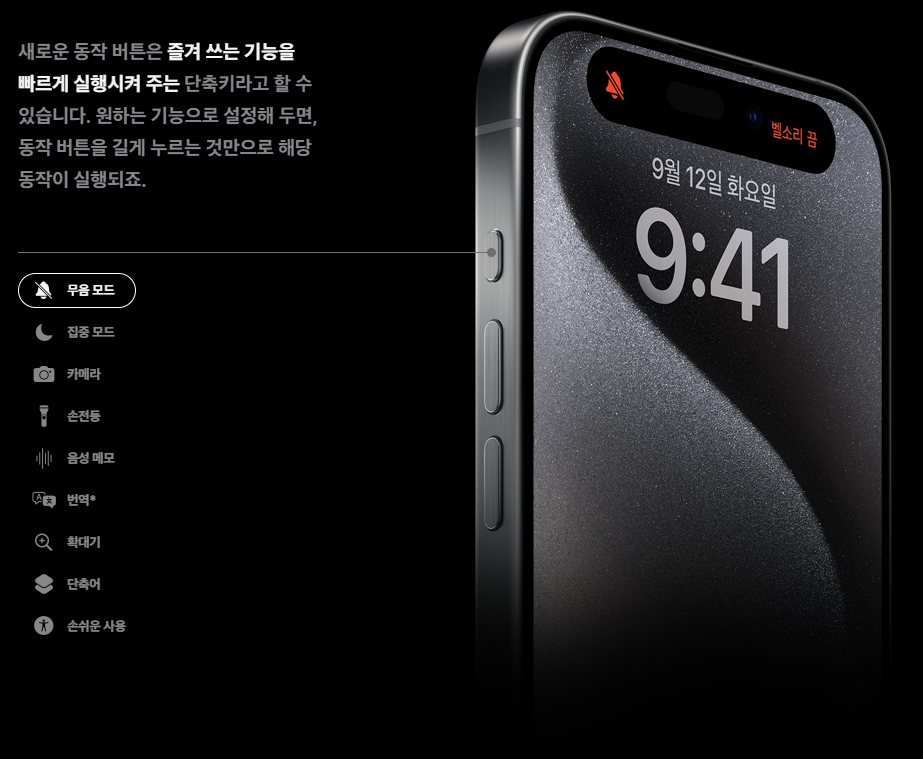이번에 출시된 아이폰15 시리즈는 사상 최초의 항공우주 등급의 티타튬 디자을 채택하였다고 해요. 화성 탐사선에 쓰이는 소재와 동일 합금을 사용하여 역대급 Pro 모델 중 가장 가볍다고 하니 기대가 됩니다.